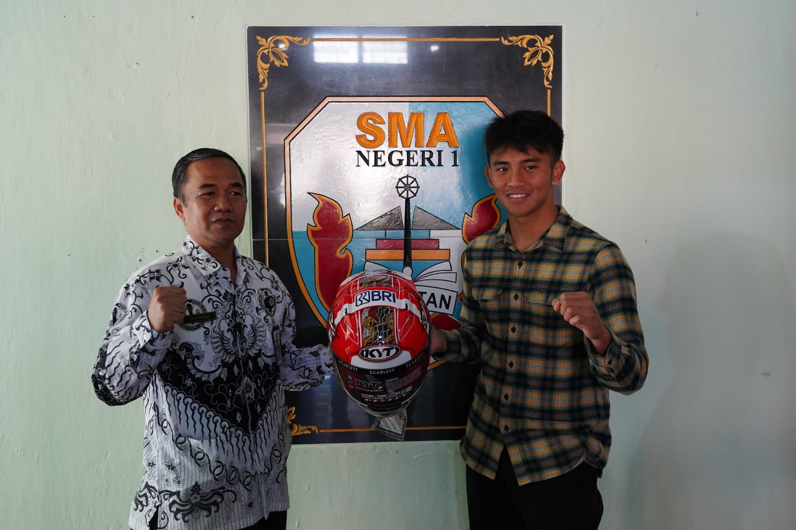 “Mario juga memberikan kenang-kenangan helm replika bermotif batik telaga Sarangan untuk SMAN 1 Magetan sebagai ungkapan syukur dan rasa terimakasih,” imbuhya.