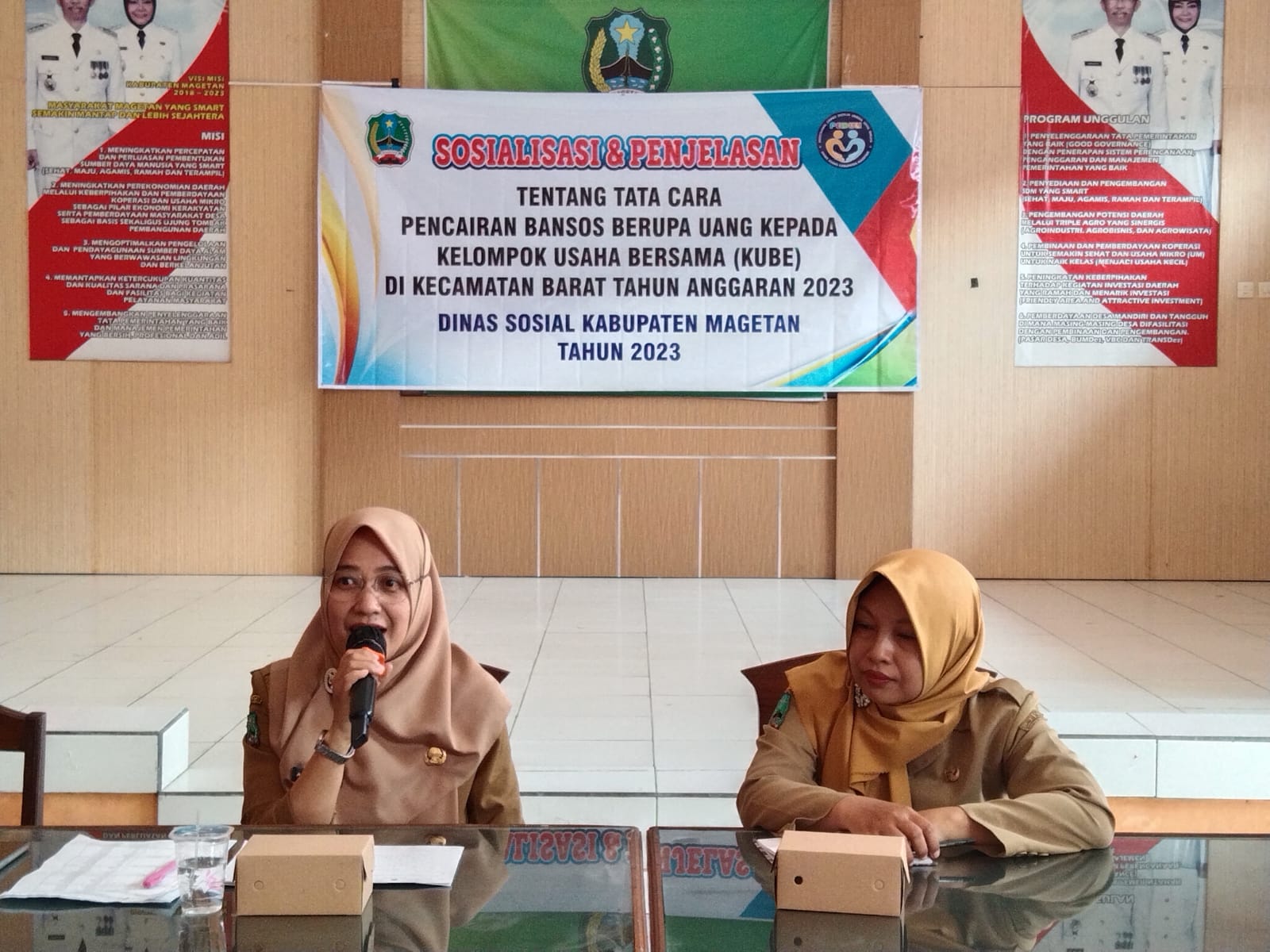 Magetan,seputarjatim.co.id – Dinas Sosial (Dinsos) Kabupaten Magetan, menggelar Sosialisasi dan Penjelasan, Tentang Tata Cara Pencairan Bansos Berupa Uang Kepada Kelompok Usaha Bersama (KUBE) di Kecamatan Barat Tahun 2023, Selasa (20/6/2023).