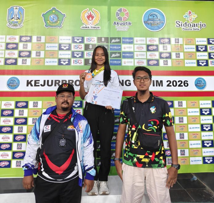 Magetan,seputarjatim.co.id – Prestasi membanggakan datang dari dunia olahraga air Kabupaten Magetan. Salah satu atlet renang andalannya, Dayang Ayu Marimbi, berhasil membawa pulang medali perunggu dalam ajang Kejuaraan Daerah (Kejurda) Renang Tingkat Provinsi Jawa Timur yang berlangsung di Sidoarjo baru-baru ini.
