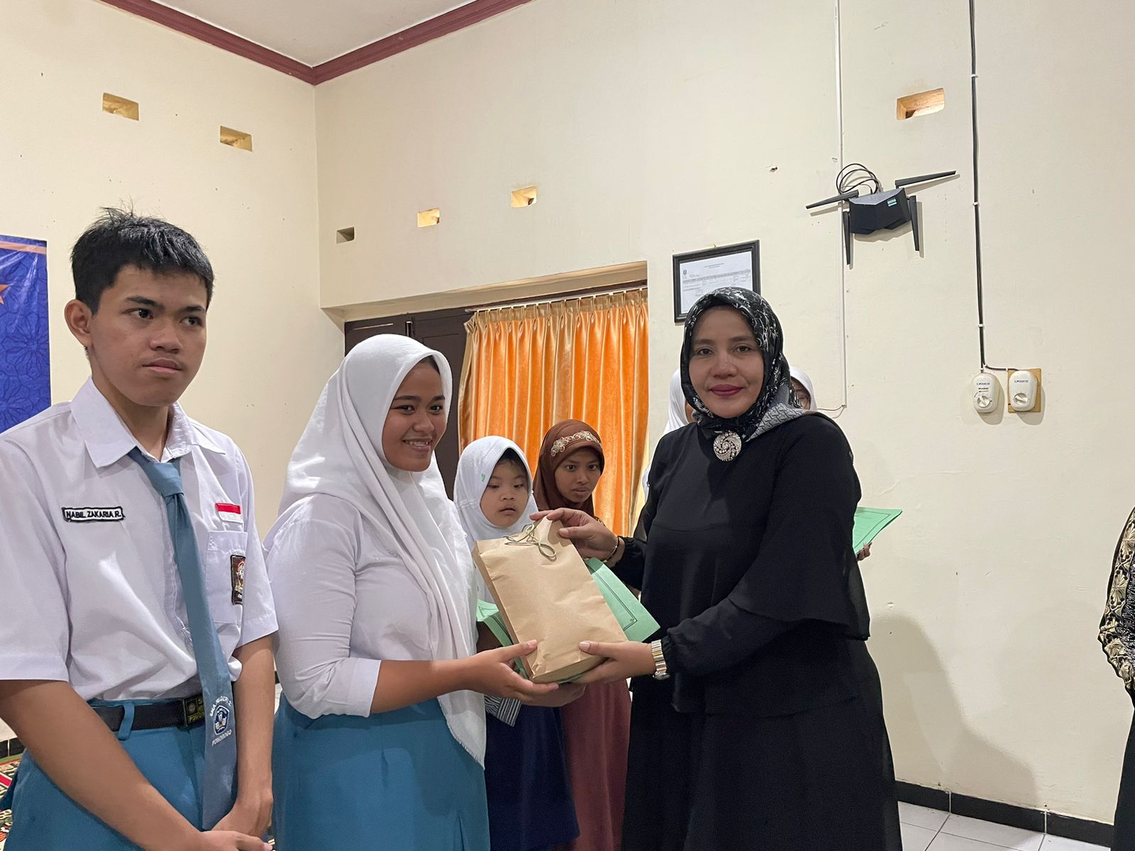 Kepala Cabdindik wilayah Ponorogo Lena M.Pd secara simbolis menyerahkan santunan kepada siswa