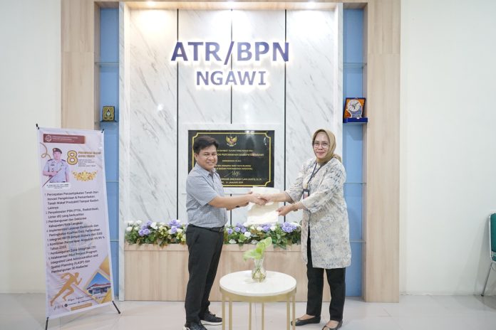 Ngawi,seputarjatim.co.id — Kantor Pertanahan Kabupaten Ngawi melaksanakan kegiatan penyerahan sertipikat Barang Milik Negara (BMN) kepada perwakilan Direktorat Jenderal Bina Marga Kementerian Pekerjaan Umum dan Perumahan Rakyat (PUPR). Kegiatan tersebut berlangsung di Kantor Pertanahan Kabupaten Ngawi.