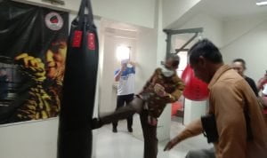 Bupati Magetan Suprawoto saat melihat ruang latihan IBCA MMA dan Muaythai Magetan