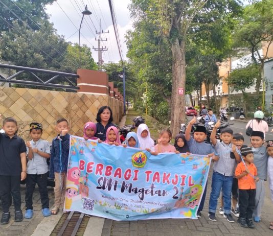 Latih Kepedulian Sejak Dini, Siswa SDN Magetan 2 Gelar Aksi Bagi Takjil di GOR Ki Mageti