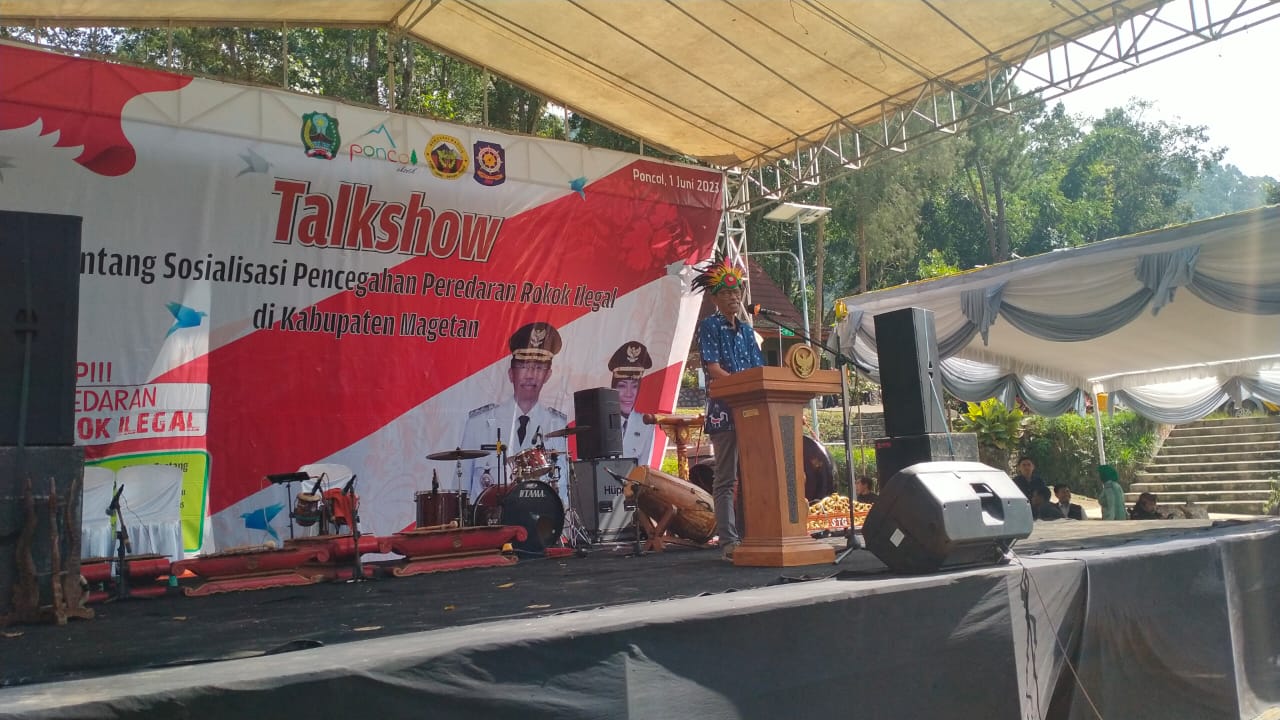 Dalam sambutannya Bupati Magetan Suprawoto menjelaskan jika tujuan dari dilaksanakan kegiatan sosialisasi ini adalah untuk menekan penyebaran rokok ilegal.