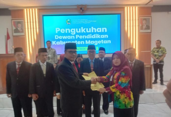 Magetan,seputarjatim.co.id – Dewan Pendidikan Kabupaten Magetan Periode 2024-2025 resmi dikukuhkan,pengukuhan diadakan di Aula Dinas Pendidikan,Kepemudaan dan olahraga(Dikpora).