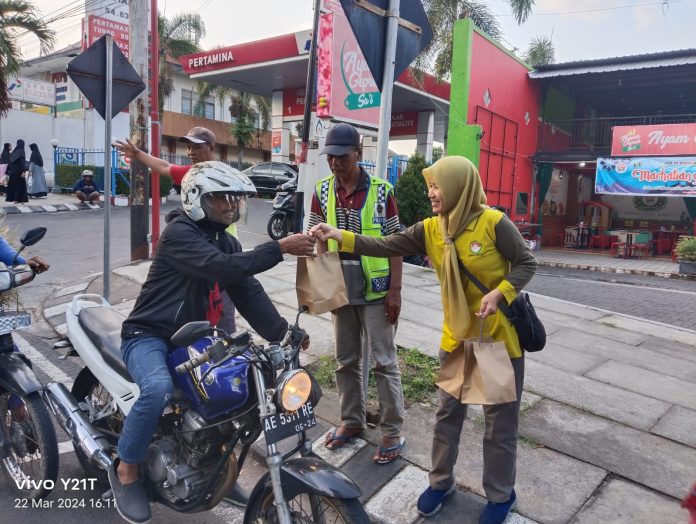 Sebanyak 150 Kotak Takjil dibagikan kepada penguna jalan di sekitaran jalan Monginsidi,Selosari,Magetan,Jumat (22/03/2024)