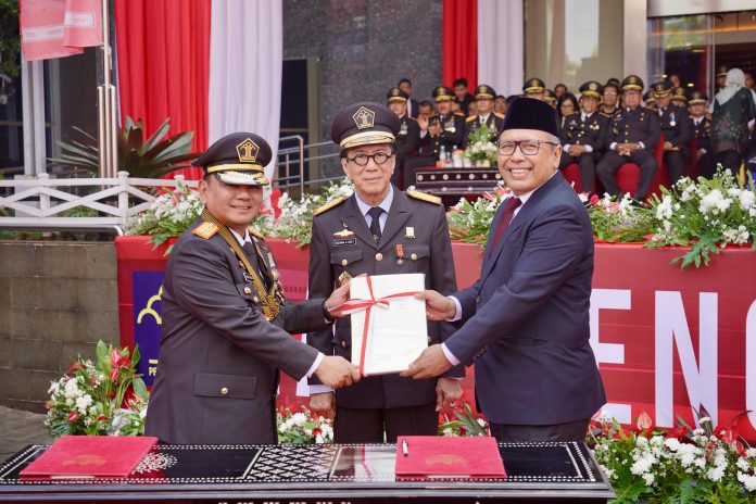 Jakarta,seputarjatim.co.id – Kementerian Agraria dan Tata Ruang/Badan Pertanahan Nasional (ATR/BPN) menerima Piagam Penghargaan Mitra Kerja atas Percepatan Penyertipikatan Tanah di Pulau Nusakambangan. Sekretaris Jenderal (Sekjen) Kementerian ATR/BPN, Suyus Windayana yang hadir mewakili Menteri ATR/Kepala BPN, Agus Harimurti Yudhoyono (ATR/BPN) menerima penghargaan tersebut pada saat Upacara Hari Pengayoman ke-79 Tahun 2024 di Lapangan Kementerian Hukum dan Hak Asasi Manusia (HAM), Jakarta, Senin (19/08/2024).