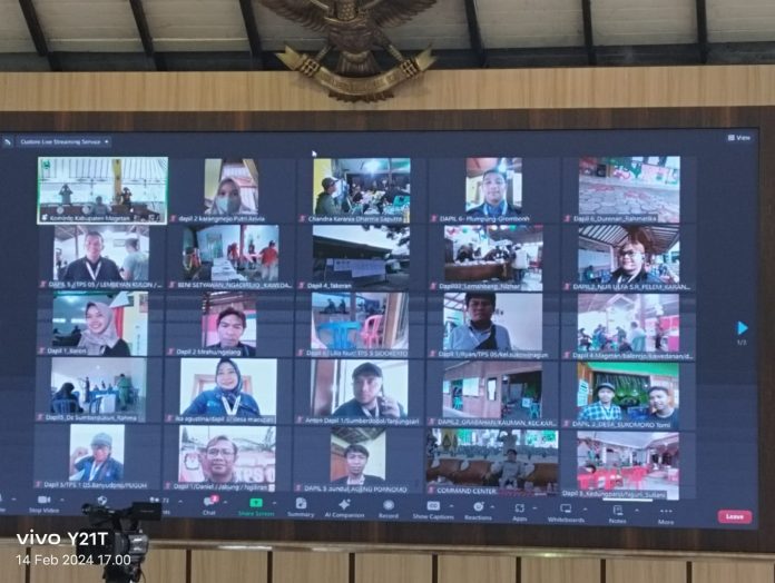 Pemantauan dilakukan dengan cara laporan langsung (live report) di TPS-TPS yang sudah ditentukan. Pj Bupati, Kapolres Magetan, dan Dandim 0804/Magetan melihat pantauan laporan-laporan dari lapangan itu di Pendapa Surya Graha, Rabu (14/02/2024)