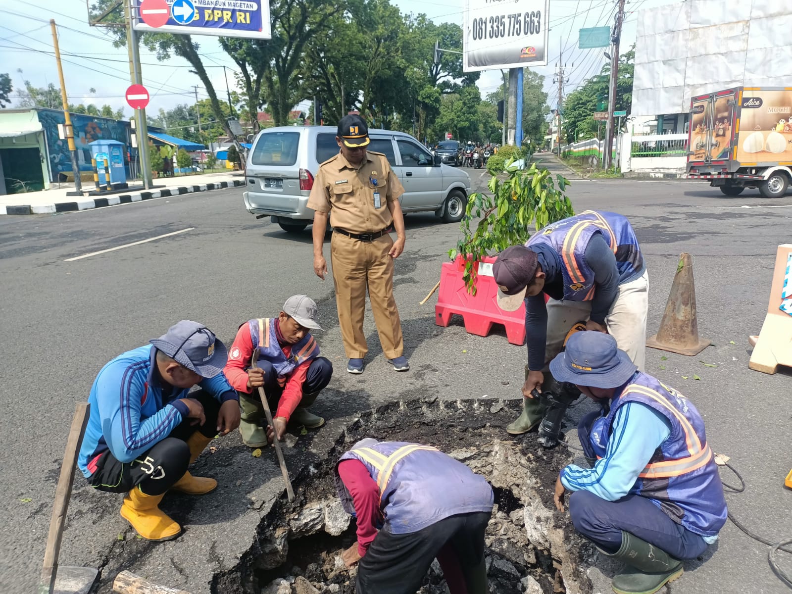 Kadin PUPR Magetan Muhtar Wahid Saat mantau Langsung Perbaikan jalan