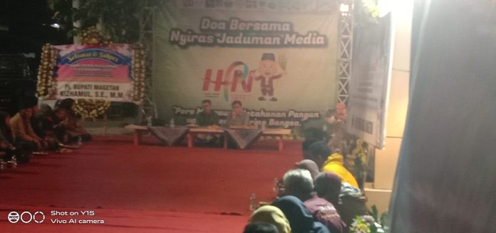 Agenda doa bersama dan jaduman Media diawali dengan doa bersama guna mengenang perjuangan rekan pers di Magetan yang telah berpulang.