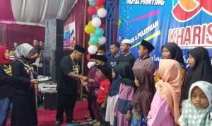 Supriyadi owner kharisma group saat menyerahkan bantuan kepada anak yatim piatu