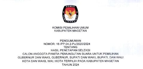 Magetan,seputarjatim.co.id – Komisi Pemilihan Umum (KPU) Kabupaten Magetan Umumkan Anggota Panitia Pemungutan Suara (PPS)terpilih.