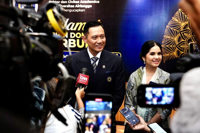 Surabaya,seputarjatim.co.id – Menteri Agraria dan Tata Ruang/Kepala Badan Pertanahan Nasional (ATR/BPN), Agus Harimurti Yudhoyono (AHY) resmi menyelesaikan studi Doktoralnya setelah melaksanakan Ujian Doktor Terbuka dan dinyatakan lulus dengan predikat _Cumlaude_ pada Senin (07/10/2024). Ujian Doktor Terbuka yang berlangsung di Aula Garuda Mukti, Gedung Kantor Manajemen MERR C Mulyorejo, Universitas Airlangga, Surabaya ini dipimpin oleh Rektor Universitas Airlangga, Prof. Dr. Moh. Nasih, SE, MT, Ak.
