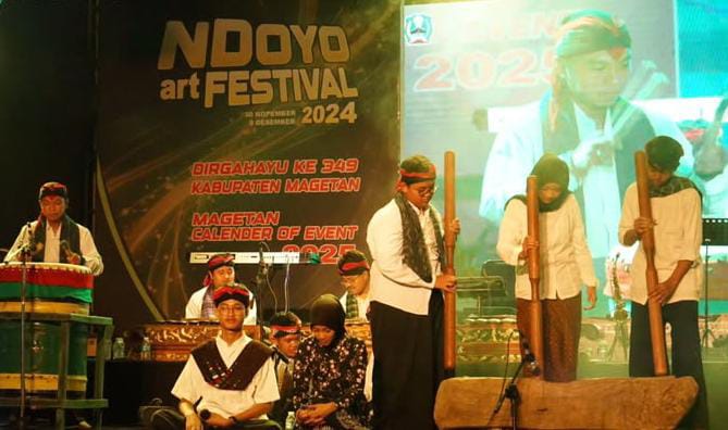 Magetan,seputarjatim.co.id – Penampilan kesenian tradisional Ledhug dan Togling yang merupakan musik asli Magetan merupakan salah satu rangkaian kegiatan Festifal Plaza Ndoyo,Gebyar HUT Korem 081/DSJ ke-61,Hari Pangan Sedunia dan Launching Calender Of Event 2025.