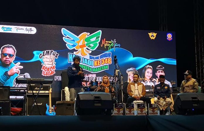 Sebelum hiburan puncak Hari jadi di mulai,Kabid Penegakan Perda Gunendar memandu acaratalkshowGempur Rokok Ilegal yang menghadirkan narasumber dari Bea Cukai Madiun,Kejaksaan Negeri Magetan dan Polres Magetan.