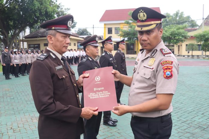 Penganugerahan tersebut dilakukan dalam upacara khidmat yang berlangsung di halaman Mapolres Magetan pukul 08.00 WIB. Bertindak sebagai inspektur upacara, Wakapolres Magetan Kompol Dodik Wibowo secara simbolis menyematkan tanda kehormatan tersebut kepada perwakilan personel.