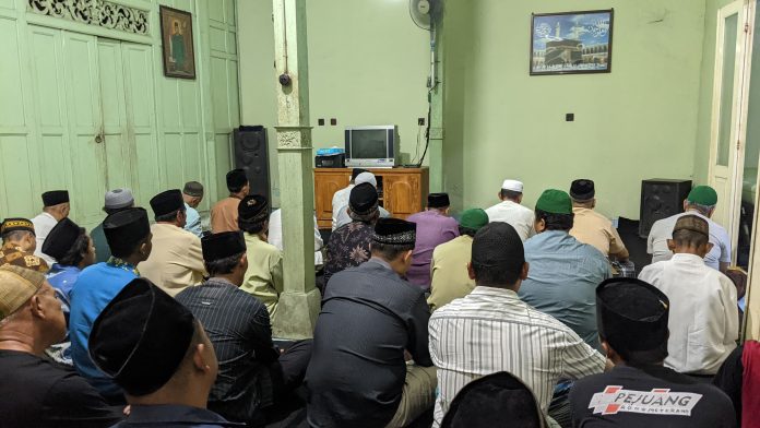 Magetan,seputarjatim.co.id-Puluhan santri dan masyarakat sekitar terlihat khusuk mengikuti Mujahadah dan sholawat yang dipimpin kyai Ali Rohmat.