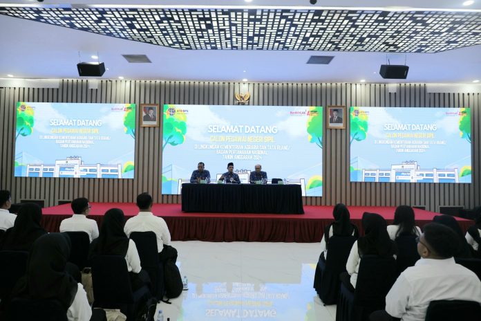 Jakarta,seputarjatim.co.id – Kementerian Agraria dan Tata Ruang/Badan Pertanahan Nasional (ATR/BPN) menggelar kegiatan Pembekalan Calon Pegawai Negeri Sipil (CPNS) Tahun Anggaran (TA) 2024 pada Senin (02/06/2025), di Aula Prona, Kementerian ATR/BPN, Jakarta. Kegiatan ini dibuka oleh Kepala Badan Pengembangan Sumber Daya Manusia (BPSDM), Agustyarsyah, yang hadir mewakili Sekretaris Jenderal (Sekjen) Kementerian ATR/BPN, Pudji Prasetijanto Hadi.