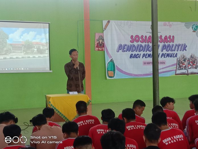 Magetan,seputarjatim.co.id – Pemkab Magetan melalui Badan Kesatuan Bangsa dan Politik (Bakesbangpol) secara marathon memberikan sosialisasi pendidikan politik dan edukasi untuk pemilih pemula.