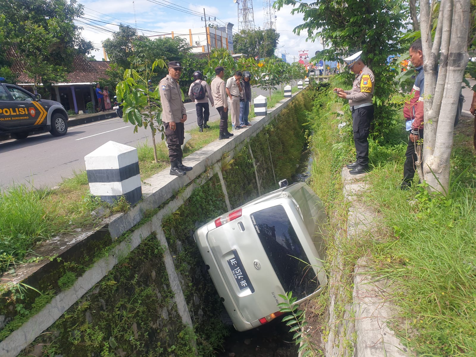 Diduga Sopir Mengantuk, Mobil Masuk Parit