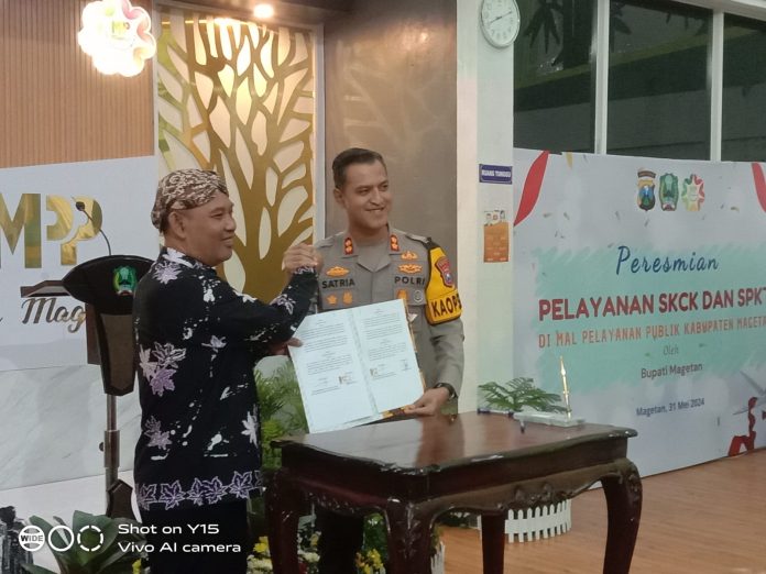 Kerjasama dua layanan baru di MPP tersebut di tandantangani oleh kapolres Magetan dan diresmikan oleh Pj Bupati Magetan,Hergunadi.