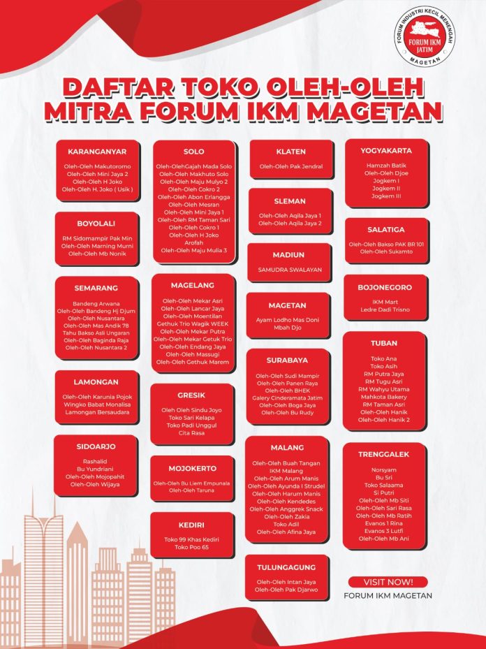Ketua IKM Magetan Ahmad Baiquni menyampaikan bahwa kini produk unggulan IKM Magetan telah tersedia di 125 Pusat oleh-oleh.