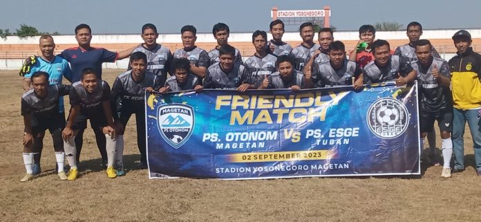 Magetan,seputarjatim.co.id-Dalam rangka menjalin silaturahmi antara Pemkab Magetan dengan Semen Indonesia-Tuban gelar pertandingan sepakbola persahabatan antara Tim sepakbola Pemkab Magetan yaitu Otonom FC dengan tim sepakbola esge tuban,yang digelar di Stadion  Yosonegoro Magetan,Sabtu(02/09/2023)