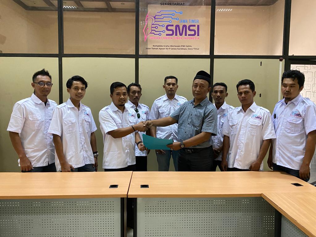 Ketua SMSI Jawa Timur, H Makin Rahmat. SH,. MH. Menyerahkan Surat Keputusan Pengurus Serikat Media Siber Indonesia (SMSI) Kabupaten Bondowoso No.006/KPTS/SMSI-JAWATIMUR/I/2023.