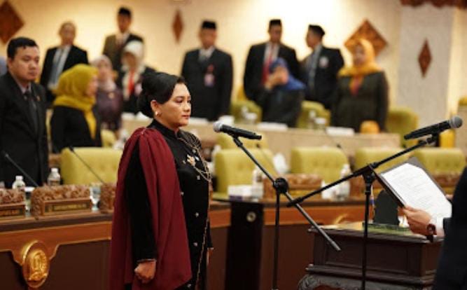 Prosesi sakral ini dimulai dengan pembacaan Surat Keputusan (SK) Menteri Dalam Negeri, diikuti pengambilan sumpah jabatan, penandatanganan berita acara, hingga penyematan PIN emas DPRD sebagai simbol resmi bertugasnya “Mbak Sasa”—sapaan akrabnya—untuk sisa masa jabatan 2024–2029.