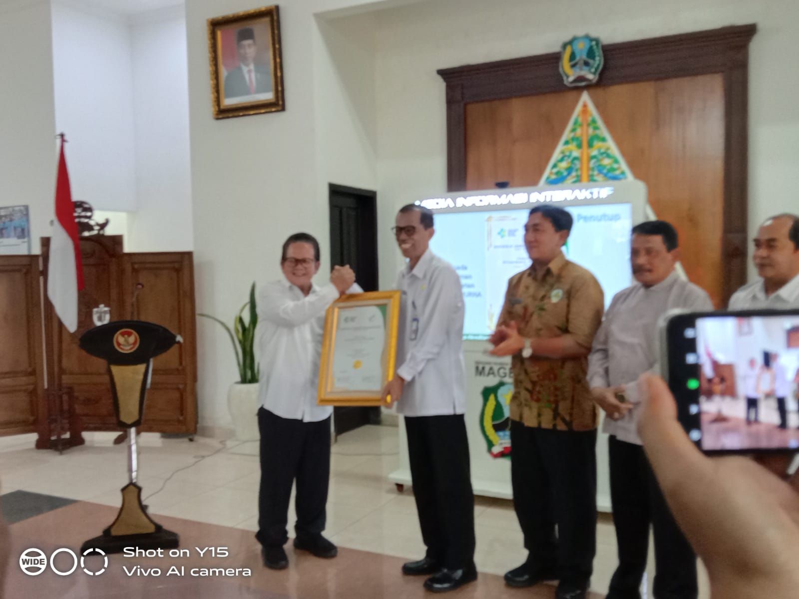 Lembaga Akreditasi Damar Husada Paripurna menyerahkan sertifikat akreditasi kepada RSUD dr. Sayidiman Magetan dan diterima secara langsung oleh Bupati Magetan di Ruang Jamuan Pendapa Surya Graha, Rabu (31/05/2023)