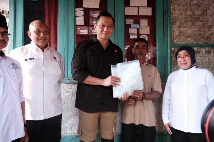 “Kementerian ATR/BPN ingin terus meyakinkan agar semua pada akhirnya punya sertifikat tanah yang sah dari negara karena dari situ kita semua punya kepastian hukum hak atas tanah,” kata Menteri AHY kepada warga yang hadir usai menyerahkan sertifikat tanah secara door to door.