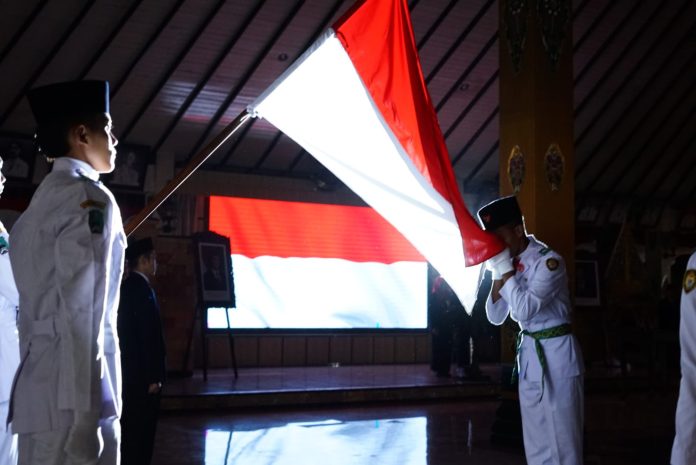 Magetan,seputarjatim.co.id-Bupati Magetan,Nanik Endang Rusminiarti memimpin langsung upacara pengukuhan pasukan pengibar bendera(Paskibra) Merah Putih Kabupaten Magetan 2025 di Pendopo Surya Graha Magetan, Kamis(14/08/2025)malam.