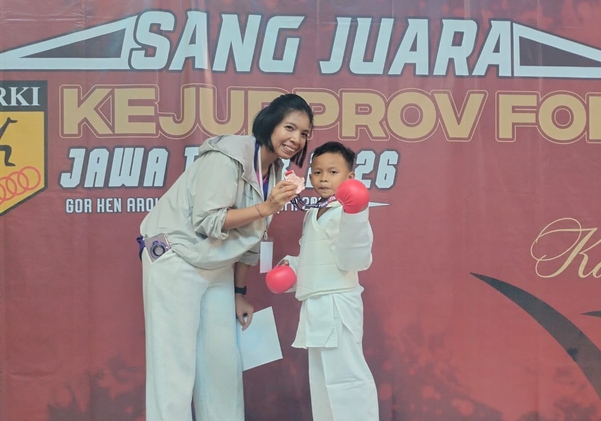 Magetan,seputarjatim.co.id – Usia belia bukan halangan untuk mengukir prestasi gemilang. Hal inilah yang dibuktikan oleh Cavy Zayn Putro Setyawan, bocah berusia lima tahun asal Magetan yang sukses memborong dua medali dalam ajang Kejuaraan Provinsi (Kejuprov) Forki Jawa Timur 2026 di GOR Kenarok, Malang.