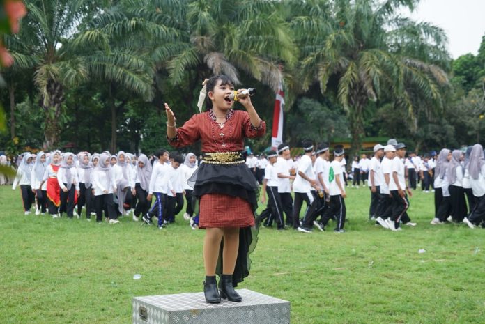Magetan,seputarjatim.co.id-Peringatan Hari Pendidikan Nasional (Hardiknas) 2025 digelar di Aloon-aloon Magetan.Selain senam anak Indonesia Hebat dan tari masal,hardiknas 2025 juga dimeriahkan oleh Gracia Elisabet Aurelia.