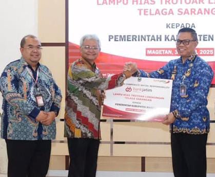 “Bantuan CSR berupa lampu hias Trotoar dilingkungan Telaga Sarangan merupakan bentuk kepedulian Bank Jatim dalam turut sertas memajukan dan mensejahterakan masyarakat Magetan dalam meningkatkan perekonomian utamanya Kawasan wisata di Magetan,” ucapnya,Rabu(30/04/2025).