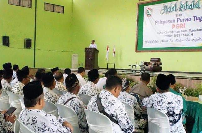 Magetan,seputarjatim.co.id – Bertempat di Aula SMAN 1 Kawedanan, Magetan, Bupati Suprawoto menandatangani surat purna tugas guru ASN anggota PGRI dan laksanakan Halal bi halal.Rabu(24/05/2023)