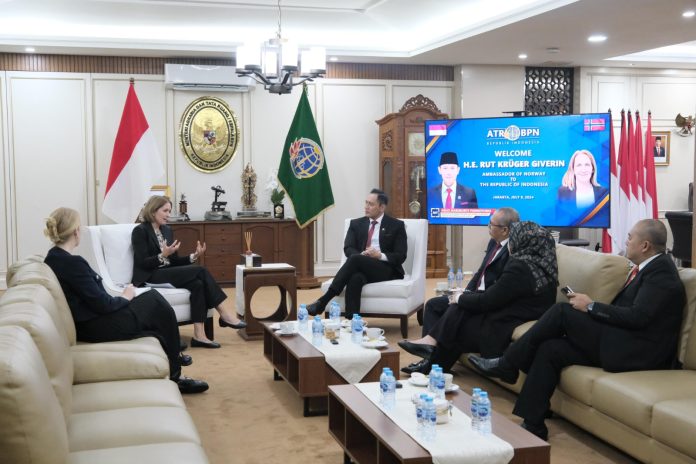 Jakarta,seputarjatim.co.id – Menteri Agraria dan Tata Ruang/Kepala Badan Pertanahan Nasional (ATR/BPN), Agus Harimurti Yudhoyono (AHY) menerima kunjungan Duta Besar Norwegia untuk Indonesia, Rut Kruger Griven di Ruang Menteri, Kementerian ATR/BPN, Jakarta pada Selasa (09/07/2024).
