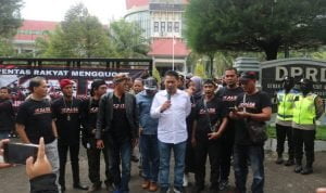 Ketua DPRD Magetan saat menemui aksi damai di depan gedung DPRD Magetan