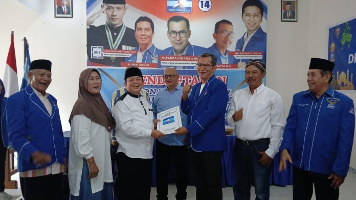 Tikno,pendaftar pertama di partai Demokrat dengan di dampingi para tokoh dan element masyarakat.